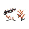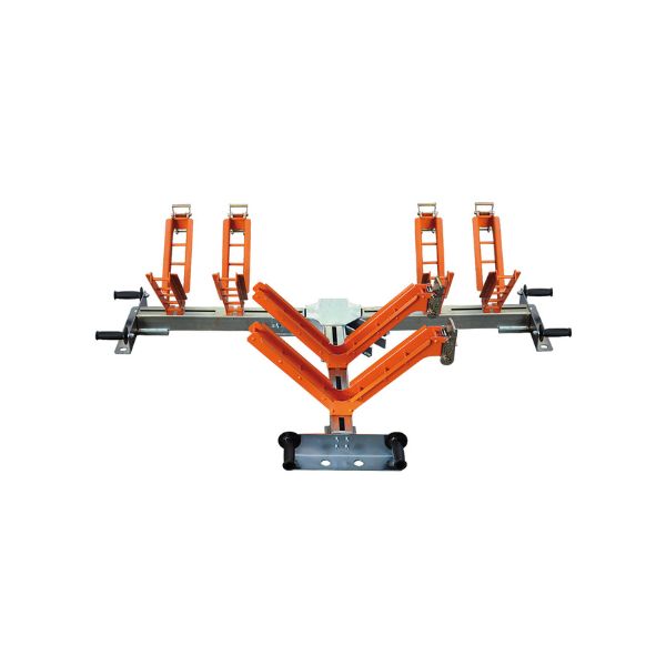 The ALIGNER is entirely made of steel, featuring a central adjustable joint and pipe fastening clamps fixed on axes.