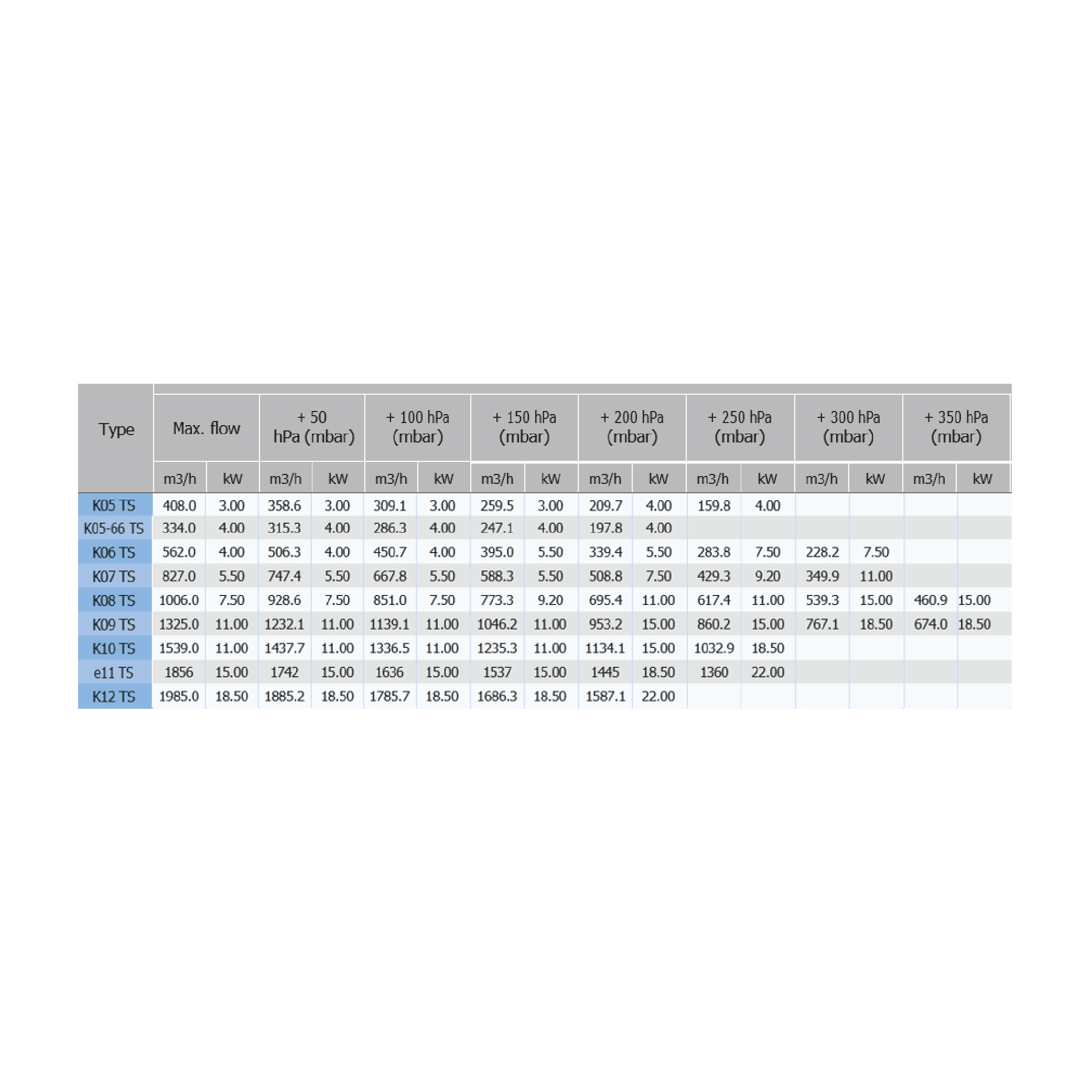 Twin Impeller Single stage./Compression @ 50Hz